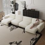 379 Luxury French Creamy Sleeper Power Sofa Bed Retractable with Remote Control, Waterproof Motorized Extendable Couch, Zero-Distance Wall Placement Pull Out Sofa Bed, Chenille Fabric, High-Density Resilient Sponge, L/U Shaped Chaise for Living Room, Creamy White