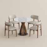 89 Modern Vintage Round Breakfast Table Set For 4, Glossy Sintered Stone Top, Walnut Ash Wood Legs & Stainless Steel Base, Perfect For Small Spaces