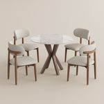 This Dining Room table and chairs set is stunning, very happy with the aesthetic and quality. Shipping took a few weeks but it was well worth the wait! I’d highly recommend purchasing it.
