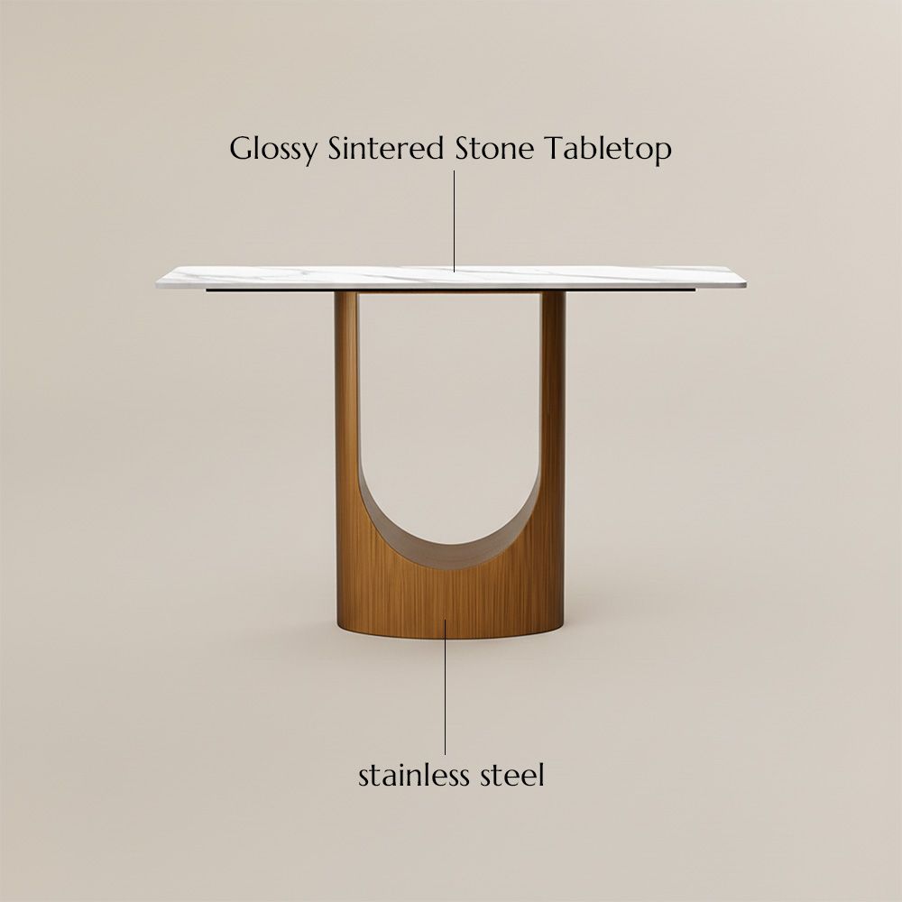 When I first saw this console table, its unique style caught my eye instantly. It fits perfectly in my dining room, adding a touch of elegance. The material is sturdy and offers great resistance to scratches, which is exactly what I needed. The whole process of setting it up was smooth, and I'm genuinely pleased with its presence in my home. I recommend this to anyone looking to enhance their space.