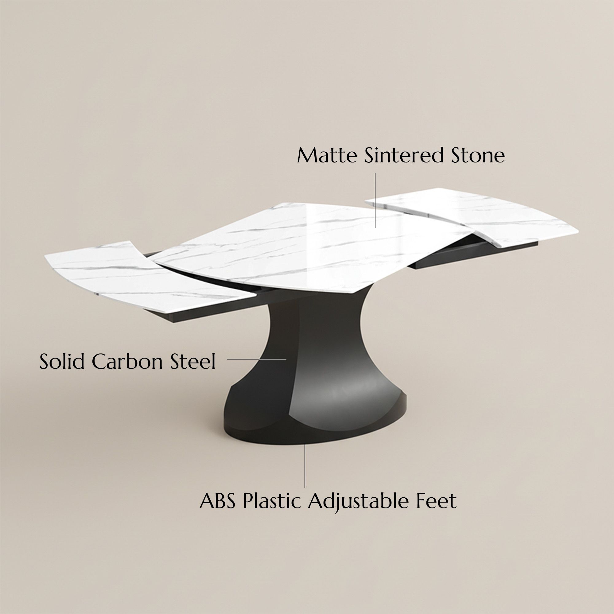 This rectangular kitchen dining table is everything I desired. The foldable design is a space-saver, and it's so easy to operate. The white glossy sintered stone tabletop is not just visually appealing but also resistant to stains and scratches. The carbon steel gray base adds a trendy and industrial look. The logistics was efficient, and the package arrived on time. The customer service was top-notch, assisting me throughout the purchase. The packaging was secure and protected the table perfectly. Installing it was a breeze with the included instructions.