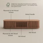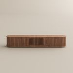 238'' Mid-Century Modern Tambour Door TV Stand, Walnut Color, on the Ground