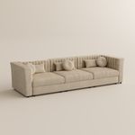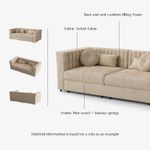 355 Inch Modern Beige Tufted Sofa with Track Arms, Velvet 3-4 Seater Sofa