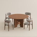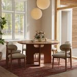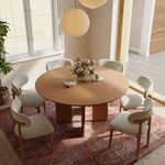 149 Mid-Century Inspired Round Wood Dining Table with Sculptural Pedestal Base
