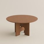 149 Mid-Century Inspired Round Wood Dining Table with Sculptural Pedestal Base, Designed for Open Legroom
