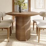 I was looking for a dining table that wasn't just a boring rectangle, and this curved oblong design is perfect. The walnut grain looks incredibly high-end and feels smooth to the touch. It fits my 1950s-inspired dining room perfectly. It comfortably seats my family while looking like a piece of art. Shipping was fast, and the pedestal base offers so much more legroom than traditional legs!