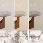 Wow! I really like this fluted base. I like the walnut color and shape. The tabletop is made of Sintered Stone, which is easy to clean. In short, I am very satisfied.