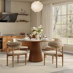This Dining Room table and chairs set is stunning, very happy with the aesthetic and quality. Shipping took a few weeks but it was well worth the wait! I’d highly recommend purchasing it.