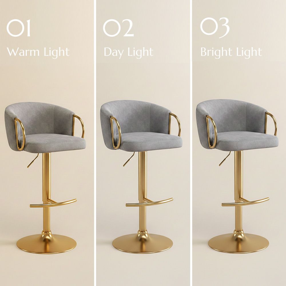 Modern Adjustable Swivel Velvet Bar Stools Set of 2, Bar Chairs with Footrest, Gray & Gold