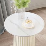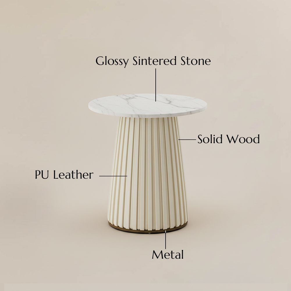 43 Modern Luxury Side Table, End Side with Glossy Sintered Stone Top, Metal Base, White