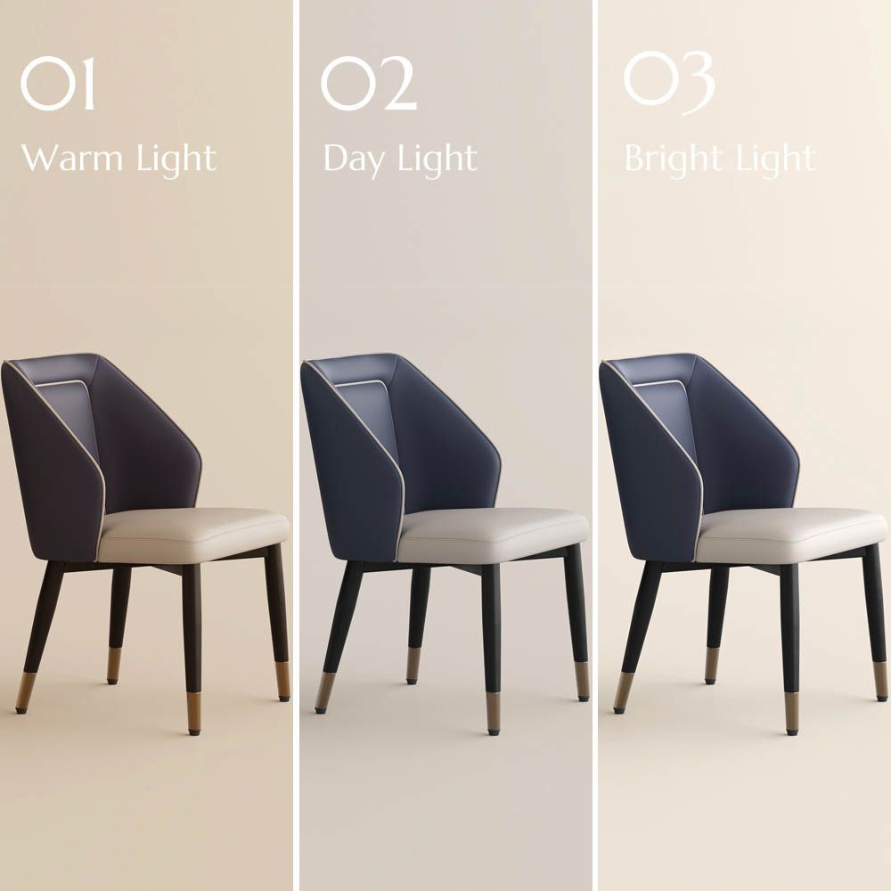 Carbon Steel Blue & Beige PU Leather Dining Chairs