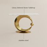 I'm extremely happy with my purchase of this modern white console table. The sintered stone tabletop is smooth and high-quality, and the arc shape stainless steel base is sturdy and stylish .Installation was quick and easy. Great product overall!