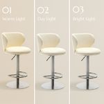 Modern Upholstered Swivel Adjustable Height Bar Stool, Faux Leather Wingback Bar Stool for Kitchen, White & Silver
